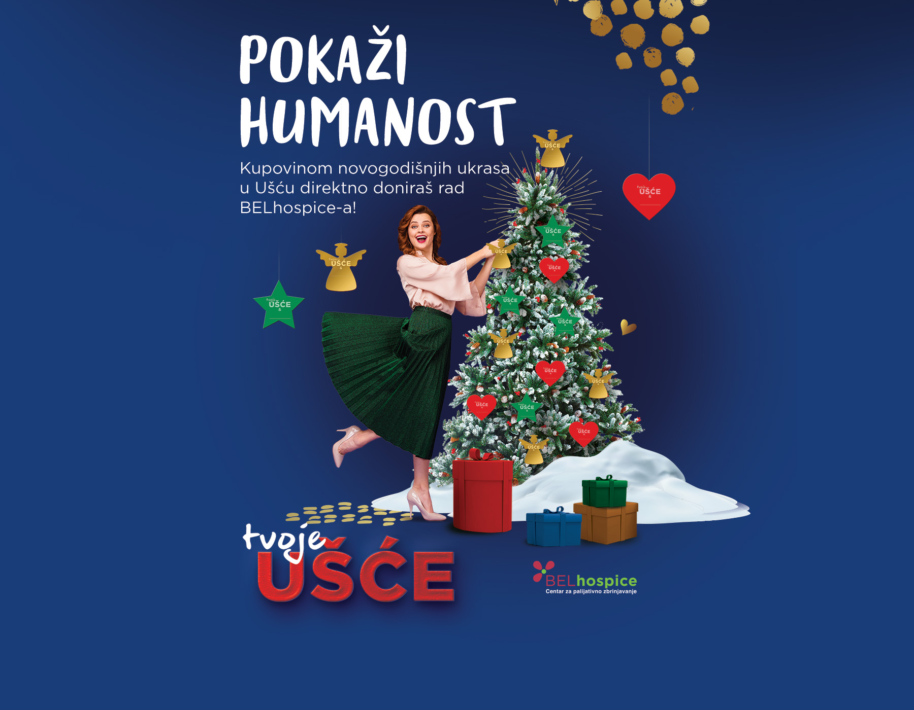 Kada birate poklon za nekoga koga volite, razmislite da taj poklon ima i human karakter. A upravo takav poklon ti nudi UŠĆE Shopping Center – posebno dizajnirane novogodišnje ukrase čijom kupovinom direktno doniraš rad BELhospice-a, prve specijalizovane organizacije koja pruža besplatne usluge palijativnog zbrinjavanja pacijentima obolelim od kancera i pomaže članovima njihovih porodica da lakše prevaziđu tešku situaciju u kojoj se nalaze. Takođe, BELhopsice pruža edukaciju iz oblasti palijativnog zbrinjavanja za profesionalce, volontere i javnost.
