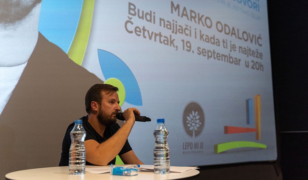 Kada ti neko kaže da je važno da vredno učiš, budeš istrajna i dobra osoba, može zvučati kao fraza. I u isto vreme, kao povod za izgovore da baš to ne uradiš. Ali kada ti to kaže čovek koji je sa 12 godina ostao bez svojih najbližiš i bez svega, onda se duboko zamisliš i izgovora više nema. Takav osećaj izazvala je priča Marka Odalovića, veterinara iz Novog Sada koji je održao 21. po redu, predavanje u okviru projekta „Lepo mi je jer tako želim“, koji već treću godinu za redom organizuju UŠĆE Shopping Center i Centar za lični razvoj LEPO MI JE.