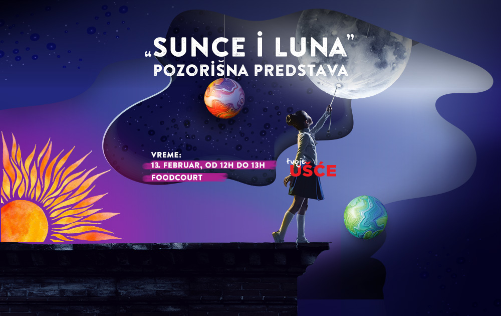 Dragi roditelji, pozivamo vas i vaše mališane na pozorišnu predstavu ,,Sunce i Luna“ koja će se odigrati u nedelju 13.02. u UŠĆE Shopping Center
