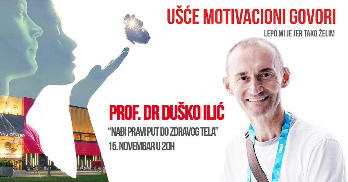 Upravo to je razlog zbog koga ne treba da propustite motivaciono predavanje Dr Duška Ilića u okviru projekta „Ušće motivacioni govori“, koje uz poruku „Lepo mi je, jer tako želim“ organizuju UŠĆE Shopping Center i Centar za lični razvoj Lepo mi je. Ovo motivaciono predavanje održaće se u četvrtak, 15. novembra u 20 časova u sali 10 bioskopa Cineplexx.