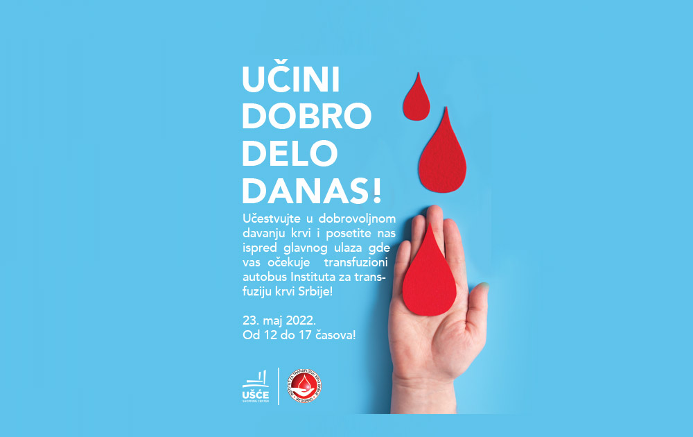 Autobus “Transfuziomobil” vas čeka 23. maja od 12h do 17h, plato ispred glavnog ulaza u centar UŠĆE SC.