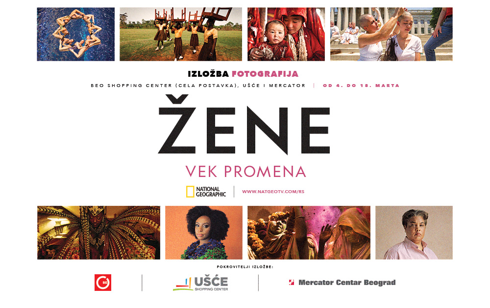Izložba fotografija društva NATIONAL GEOGRAPHIC “Žene: Vek promene”, koja će biti održana u Beogradu u omiljenim beogradskim šoping centrima od 4. do 18. marta poziva sve posetioce na razgovor o značajnom i važnom dopinosu žena društvenim tokovima kroz istoriju, i to upravo na mestima koja dnevno okupljaju i više hiljada ljudi. Ove fotografije imaju za cilj da, uoči globalnog praznika posvećenog ženama, podsete publiku u Srbiji pravo značenje 8. marta, pruže osvrt na poziciju žena u modernom društvu i pruže inspiraciju za promene.