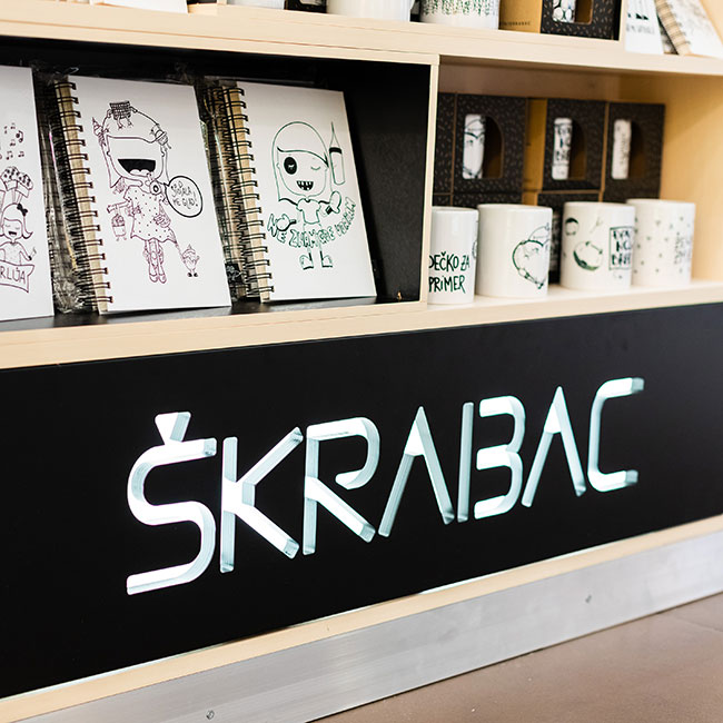 Škrabac je brend koji kroz duhovite ilustracije svakodnevnih izraza, anegdota, mudrosti i ostalih zanimacija, dopire do srca ljudi od 7 do 77, jedini uslov je imati smisla za humor, ponekad i ironiju. Brend je nastao 2014. godine, a ideja koja postoji od samog početka je da se sve radi u saradnji sa domaćim firmama tako da je zaista „Made in Serbia with love“. U ponudi je tekstilni odevni program za žene, muškarce, decu i bebe, kao i aksesosari, a sve začinjeno dozom humora. Sve stvari se prave od nule, sa posebnim akcentom na detalje i kvalitet proizvoda.