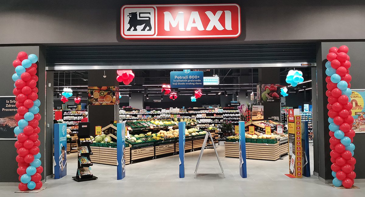 MAXI supermarket pruža širok asortiman kvalitetnih i svežih proizvoda, moderan ambijent i prepoznatljive cene a prostire se na skoro 1.000 metara kvadratnih, na nivou -2 u šoping centru Ušće. Za vrhunsku uslugu brine se 50 prodavaca koji potrošače očekuju na dobro poznatim odeljenjima prehrane i neprehrane. Potrošači mogu da uživaju u kvalitetnoj nabavci na odeljenjima pijace, mesare, gotovih jela i delikatesa, sireva iz celoga sveta, a savršen miris i ukus peciva koji se spremaju u Maxi pekari ponudiće posetiocima poseban doživljaj i uživanje svim čulima. Kupovina je brza i efikasna zahvaljujući sistemu plaćanja na pet regularnih i četiri samouslužne kase.