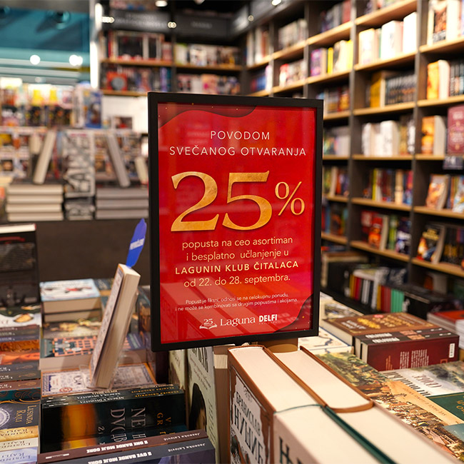 Ako već niste član Laguninog kluba čitalaca, možete se učlaniti u knjižari i ostvariti velike popuste pri kupovini naslova u izdanju Lagune. Takođe, uvek važi popust od 10% na kupovinu tri ili više knjiga.