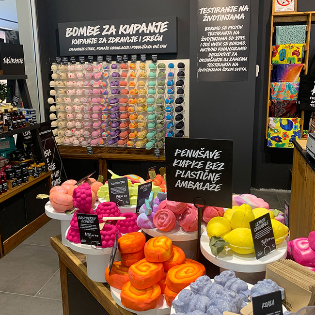 Lush je inovativna kozmetička kompanija poznata po svojim svežim, ručno rađenim proizvodima poput bombi za kupanje i šampona bez ambalaže napravljenih od etički nabavljenih sastojaka, sa snažnom posvećenošću borbi protiv testiranja na životinjama i smanjenju ambalažnog otpada. Osnovana u Velikoj Britaniji 1995. godine, Lush je kompanija koja vodi kampanje i koristi svoju platformu za podršku raznim ciljevima vezanim za životnu sredinu, ljudska prava i zaštitu životinja kroz prodaju i angažovanje zajednice.