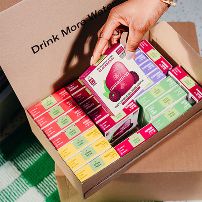 Svojim proširenim asortimanom boca za višekratnu upotrebu, modernog dizajna i voćnih kocki za hidrataciju koje se rastvaraju da dodaju ukus i funkcionalnost vodi, waterdrop® je posvećen tome da hidrataciju učini održivom i ukusnom za svakoga. Jednostavno ubaci kocku u vodu, sačekaj da se rastvori i uživaj!